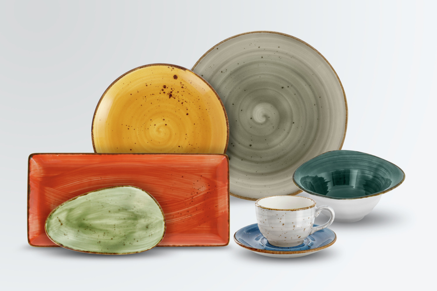 Colored bowl made of porcelain in rustic look. With irregular speckles. Each piece is unique. Premium porcelain in heavy quality. Dishwasher safe and microwaveable.