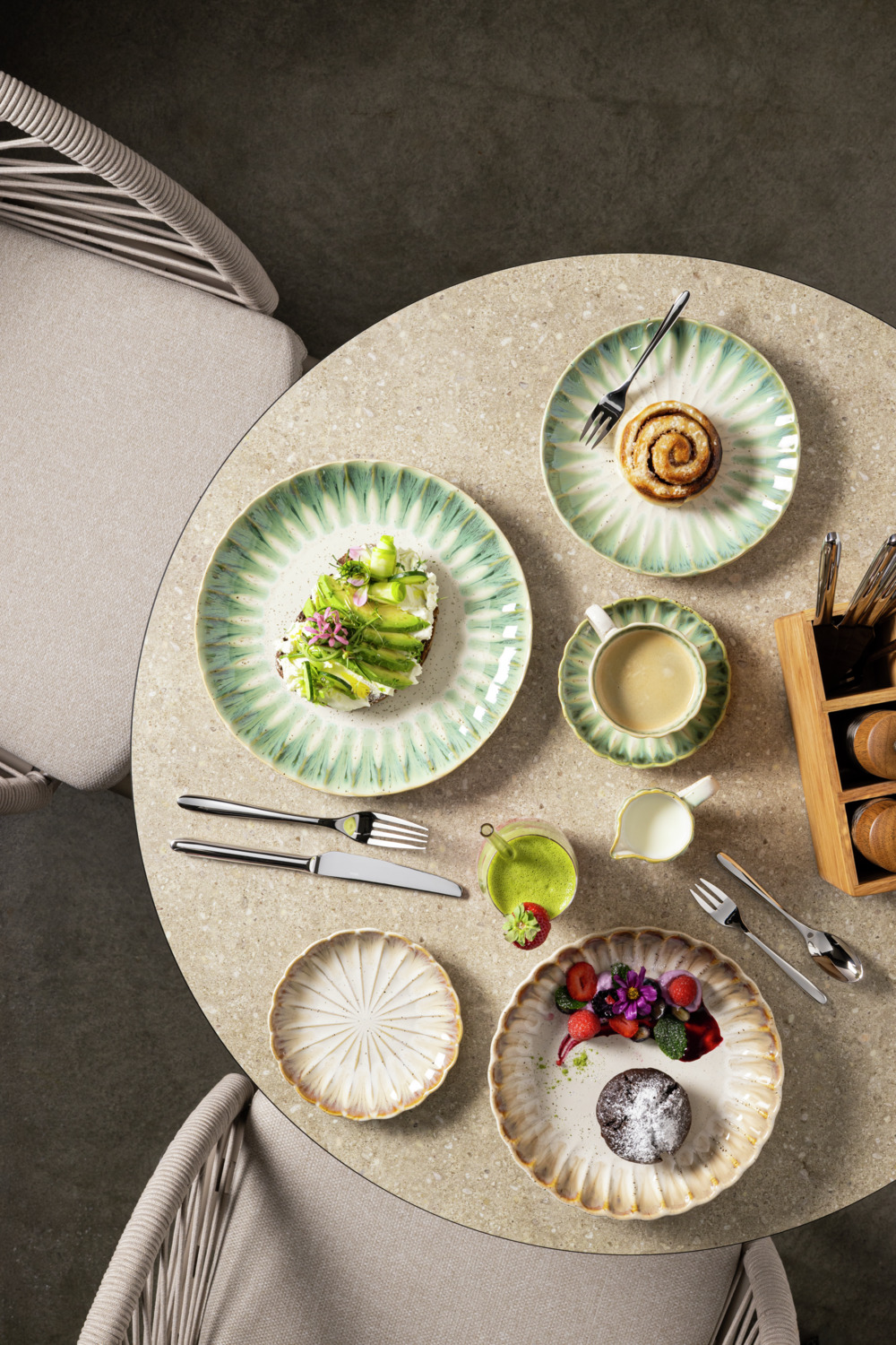 Colorful porcelain plates with a beautiful wave design. Dishwasher safe and microwaveable.