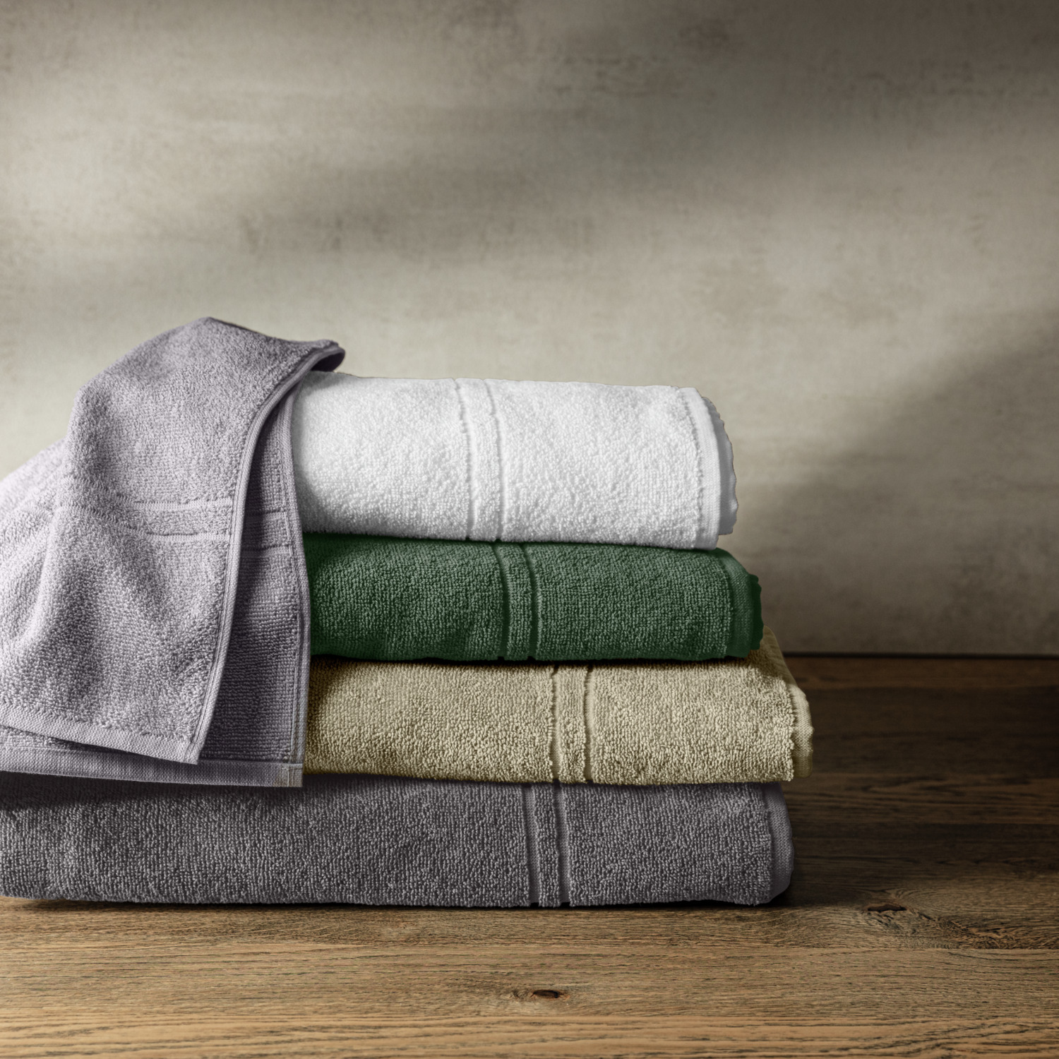 100% cotton. Weight approx. 500 g/m². Particularly absorbent sauna towel made of durable twisted terry cloth. With subtle striped border. Personalization possible. Designed by LUSINI in Germany,